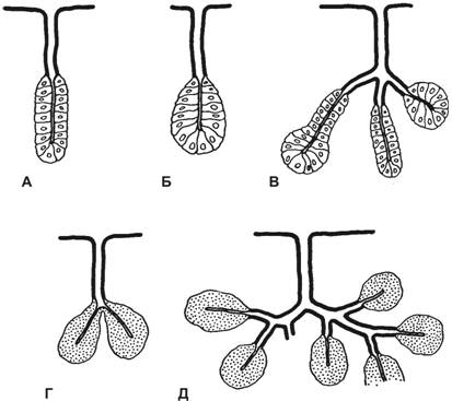 неразветвлённая; В. Сложная альвеолярно-трубчатая