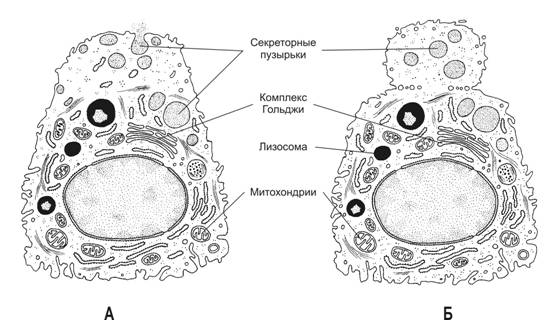 железы (В). Если клетки секреторного отдела утрачивают связь с