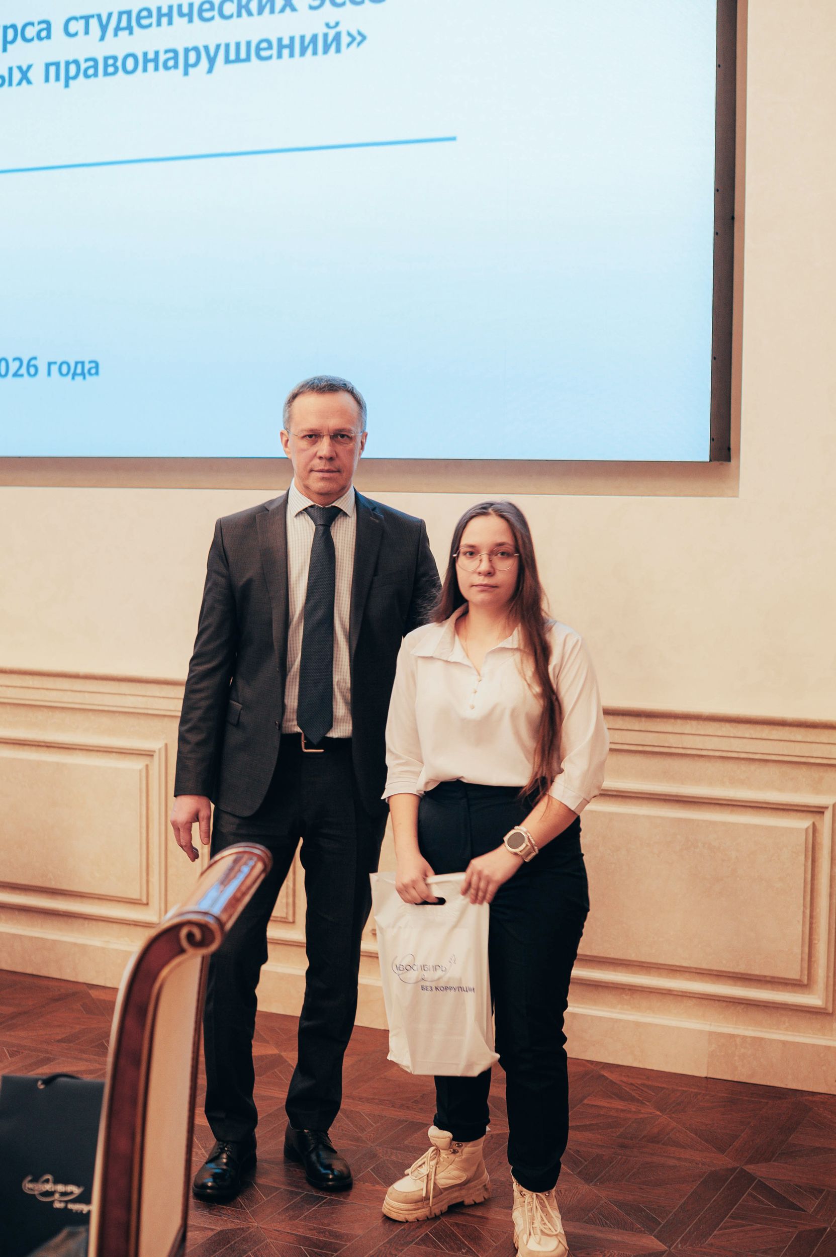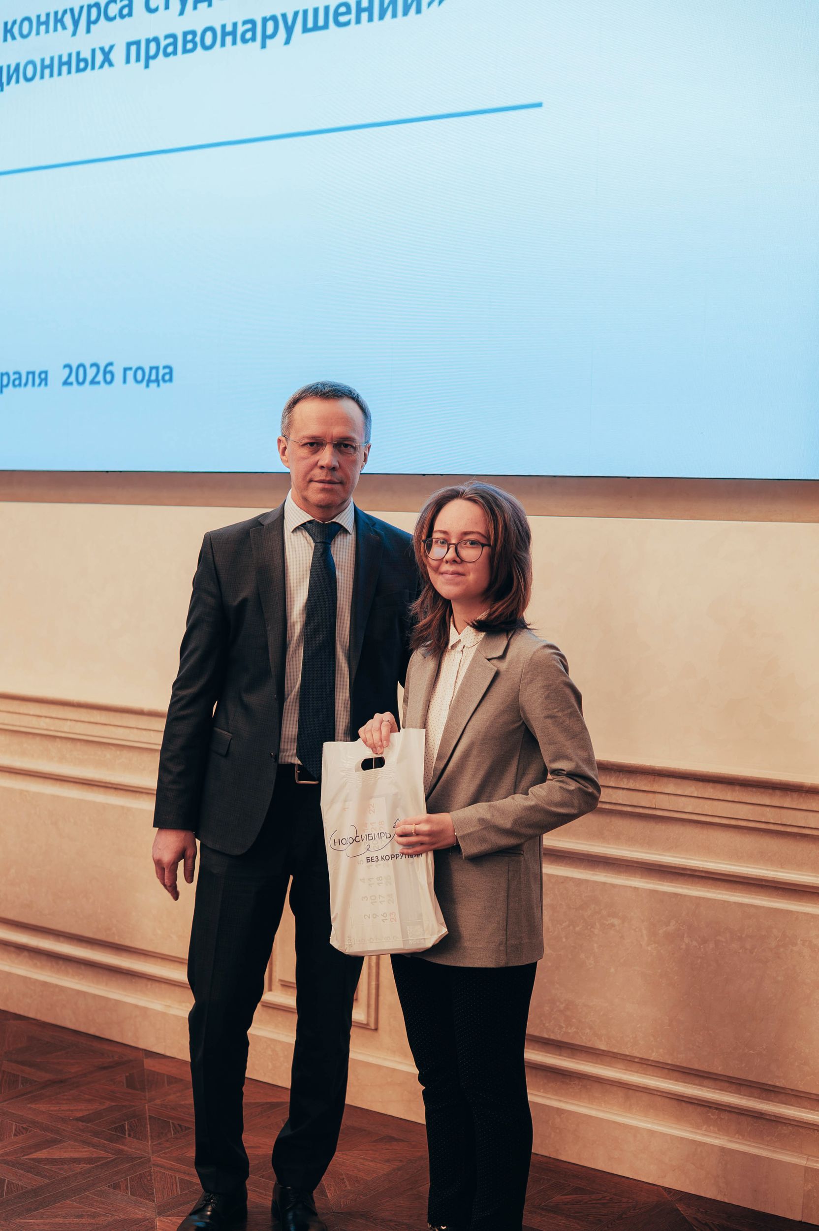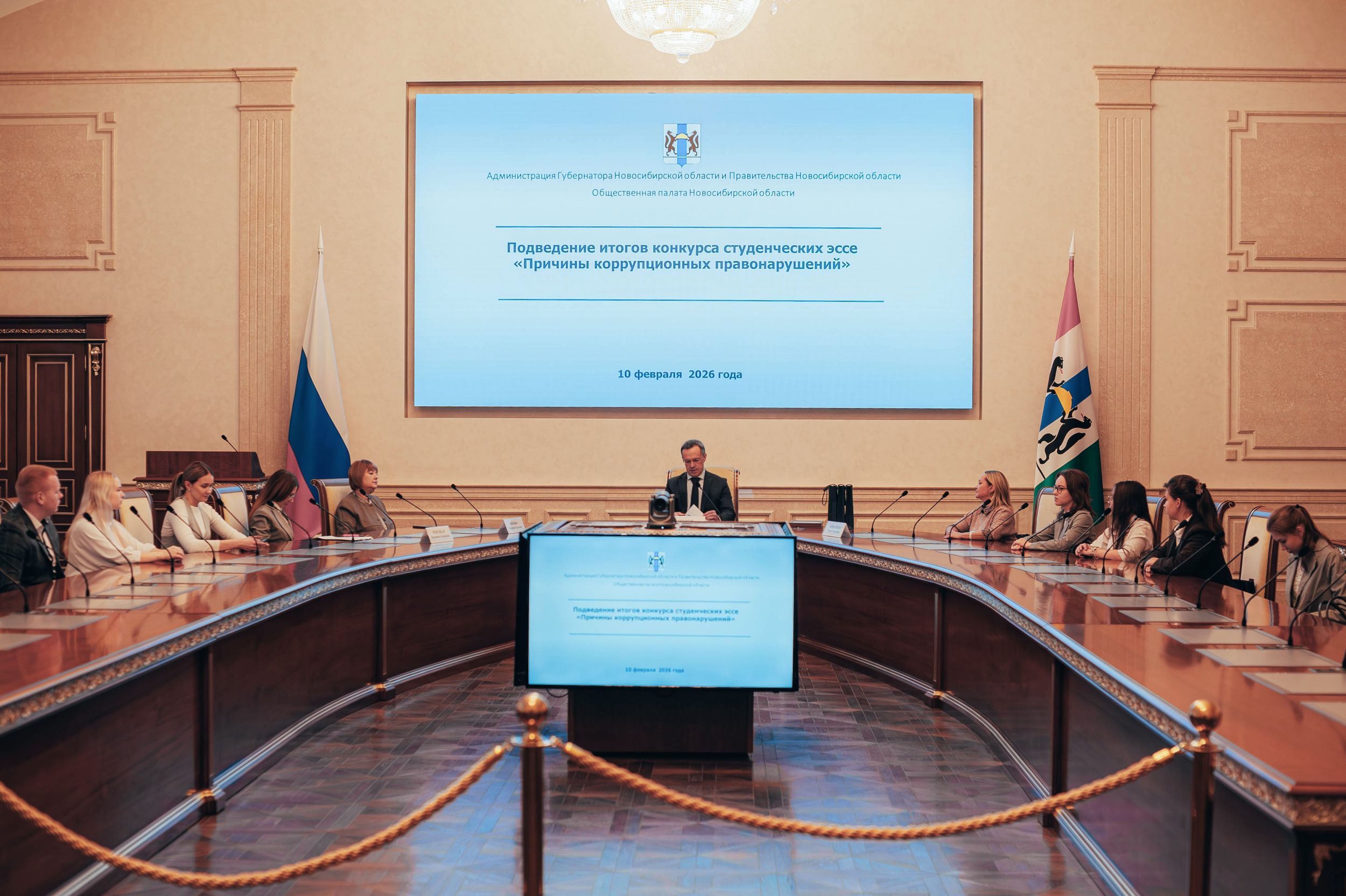 10 февраля 2026 года в малом зале Правительства Новосибирской области состоялось вручение дипломов по итогам конкурса студенческих эссе по теме : "Причины коррупционных правонарушений", в котором приняли участие студенты 3 курса факультета Экономики и управления, обучающиеся по направлению подготовки 38.03.04 Государственное и муниципальное управление.
