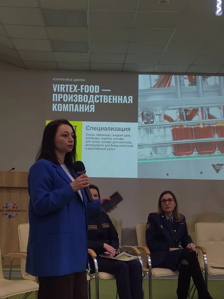 - АО "Виртекс" - является производителем соусов, маринадов и пищевых ингредиентов, на рынке известно под брендом "Виртекс Фуд" (Источник: https://virtex-food.ru/). Организацию предстставляли: Люлина Марина Викторовна - специалист по подбору и развитию персонала, Стародубцев Иван Сергеевич - технолог по стандартизации ТМЦ (выпускник ФГБОУ ВО Университет биотехнологий);