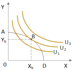 Рис. 19. Производственный оптимум индивида при наличии обмена |