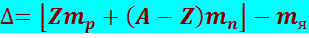 называется дефектом массы ядра. Соотношение (8.2.1) практически не нарушается, если заменить массу протона mp массой атома водорода mH, а массу ядра mя – массой атома ma. Действительно, если пренебречь сравнительно ничтожной энергией связи электронов с ядрами, указанная замена будет означать добавление к вычитаемому и уменьшаемому выражения, стоящего в фигурных скобках, одинаковой величины, равной Zmв. С учётом этого получим: (8.2.3)