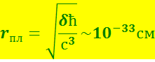где В общем случае (включающем сильные поля тяготения и скорости движения, сравнимые со скоростью света, тяготение описывается общей теорией относительности (ОТО) Эйнштейна. ОТО является обобщением ньютоновской теории тяготения на основе специальной теории относительности. ОТО описывает тяготение как воздействие физической материи на свойства четырёхмерного пространства-времени, которые в свою очередь влияют на движение материи и другие физические процессы: материя искривляет пространство-время, и это искривление, проявляемое как тяготение, влияет на движение материи. В таком пространстве-времени движение тел по инерции происходит уже не по прямым, а по искривлённым линиям и с переменной скоростью. Геометрия такого пространства оказывается неевклидовой: сумма углов треугольника не равна π, отношение длины окружности к радиусу не равно 2π и т.д., а время в разных точках течёт по разному, причём, чем сильнее гравитационное поле, тем медленнее течёт время. Эйнштейновская теория тяготения приводит (по сравнению с ньютоновской) к качественно новым эффектам: существованию гравитационных волн, испускаемых ускоренно движущимися телами, гравитационному красному смещению, возможности возникновения «чёрных дыр» и др. Теория Эйнштейна – неквантовая теория. В квантовой теории тяготения, построение которой не завершено, гравитационные волны можно рассматривать как поток квантов-гравитонов, представляющих собой электрически нейтральные частицы с нулевой массой покоя и со спином 2. В подавляющем большинстве процессов во Вселенной квантовые эффекты гравитации чрезвычайно слабы. Но вблизи сингулярностей поля тяготения (когда плотность вещества становится равной ∞), квантовые эффекты должны быть определяющими. Эта область начинается, когда радиус кривизны пространства-времени становится равным величине (9.4.7)