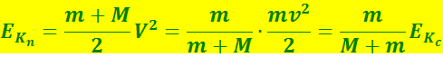 С учётом (9.6.7) кинетическая энергия пушки, с застрявшем в ней снарядом, равна: (9.6.8)