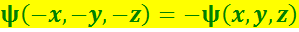 Векторы ведущие себя так, как это изображено на рис. 9.6.1а (к ним относятся в частности, скорость, импульс, сила, напряжённость электрического поля), называются полярными; векторы, ведущие себя так, как изображено на рис. 9.6.1б (к ним относятся, в частности, момент импульса, напряжённость магнитного поля), называются аксиальными. Любой вектор, связанный с физическими процессами, является либо полярными, либо аксиальными. Законы классической физики (механики и электродинамики) инвариантны относительно зеркального отражения. Это означает, что зеркальный образ любого процесса, подчиняющегося законам классической физики и происходящего в природе, подчиняется тем же законам и так же может происходить в природе. Следовательно, полярные и аксиальные векторы всегда образуют такие комбинации, что законы классической физики инвариантны относительно отражения. Можно сказать, что классические законы удовлетворяют сохранению чётности. В квантовой механике состояние элементарной частицы описывается волновой функцией ψ (x, y, z). Эта функция обладает свойством своеобразной зеркальной симметрии. При замене координат x, y, z координатами -x, -y, -z, волновая функция либо не меняется совсем: (9.6.15)