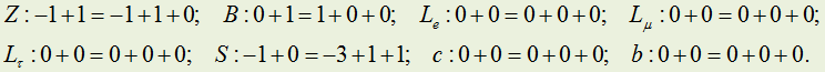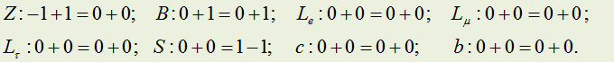 Закон сохранения лептонного заряда. Для объяснения протекания процессов с участием лептонов и антилептонов приходиться ввести квантовое L, получившее название лептонного заряда (или лептонного числа). Лептонaм приписывается L = +1, антилептонам L = -1, всем остальным частицам L = 0. При этом условии во всех процессах наблюдается сохранение суммарного лептонного заряда рассматриваемой физической системы. Теперь мы имеем возможность объяснить, почему частицу, возникшую при β--распаде (9.6.27)