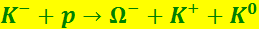 Этот процесс характерен тем, что в нём под действием обычных (нестранных) частиц образуются две странные частицы с противоположными странностями. 2. В качестве трёх частичного процесса рассмотрим реакцию рождения Ω--гиперона: (9.6.32)