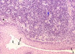 неороговевающий эпителий (1) (п. 7.2.3.2). б) В пожилом возрасте эпителий становится частично ороговевающим. |