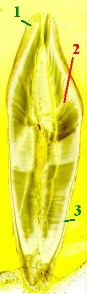 (На приведённом снимке эмаль не видна, т.к. разрушается при декальцинации.)