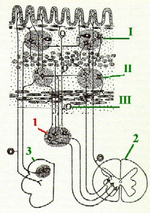 дуги. С участием интрамуральных сплетений могут замыкаться рефлекторные дуги различной протяжённости -