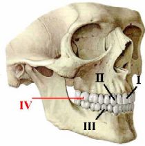 б) При этом у моляров - 2 (на нижней челюсти) или 3