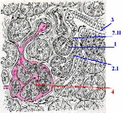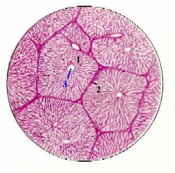 2. Поскольку внутри дольки эти компоненты тесно взаимосвязаны между собой, к системе сосудов мы обратимся дважды - до и после знакомства с дольками.