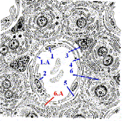 | 1. Базальная мембрана | В срединных