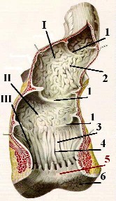 | Кожная зона (6) | Последняя зона изнутри покрыта кожей с обычными её производными - волосами, сальными железами и апокриновыми потовыми железами. | |
