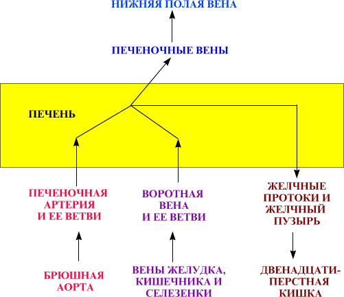 | а) Приток крови | Печень получает кровь из двух источников: