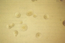 - на плотных - формирует бесцветные, прозрачные, росинчатые колонии