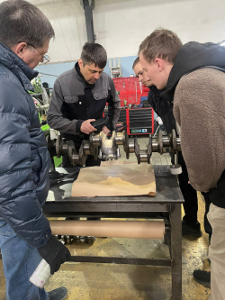Предприятие занимается восстановлением деталей ДВС и изготовлением различных деталей любой сложности. Студентов познакомили с реальным технологическим процессом восстановления коленчатого вала, распределительного вала и других деталей, показали современное оборудование, используемое при восстановлении деталей, провели мастер-класс по обнаружению дефектов при восстановлении деталей.