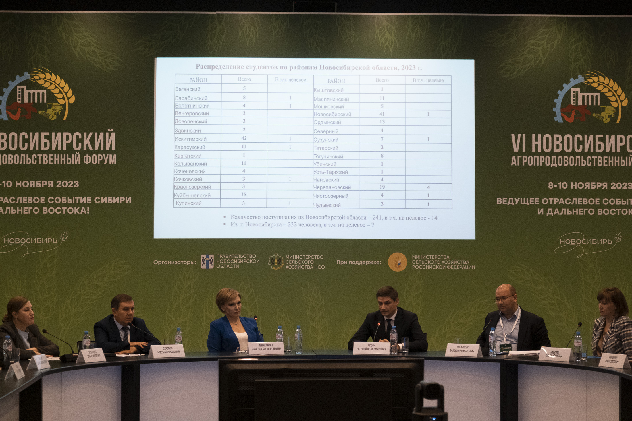 Студенты Новосибирского ГАУ выступили в качестве волонтеров, помогая организаторам курировать агрофорум и выставку. Также в рамках агрофорума состоялся Круглый стол на тему «Актуальные вопросы обеспечения региональных сельхозтоваропроизводителей квалифицированными кадрами», где ректор Новосибирского ГАУ Евгений Рудой представил доклад о подготовке квалифицированных кадров в АПК региона.