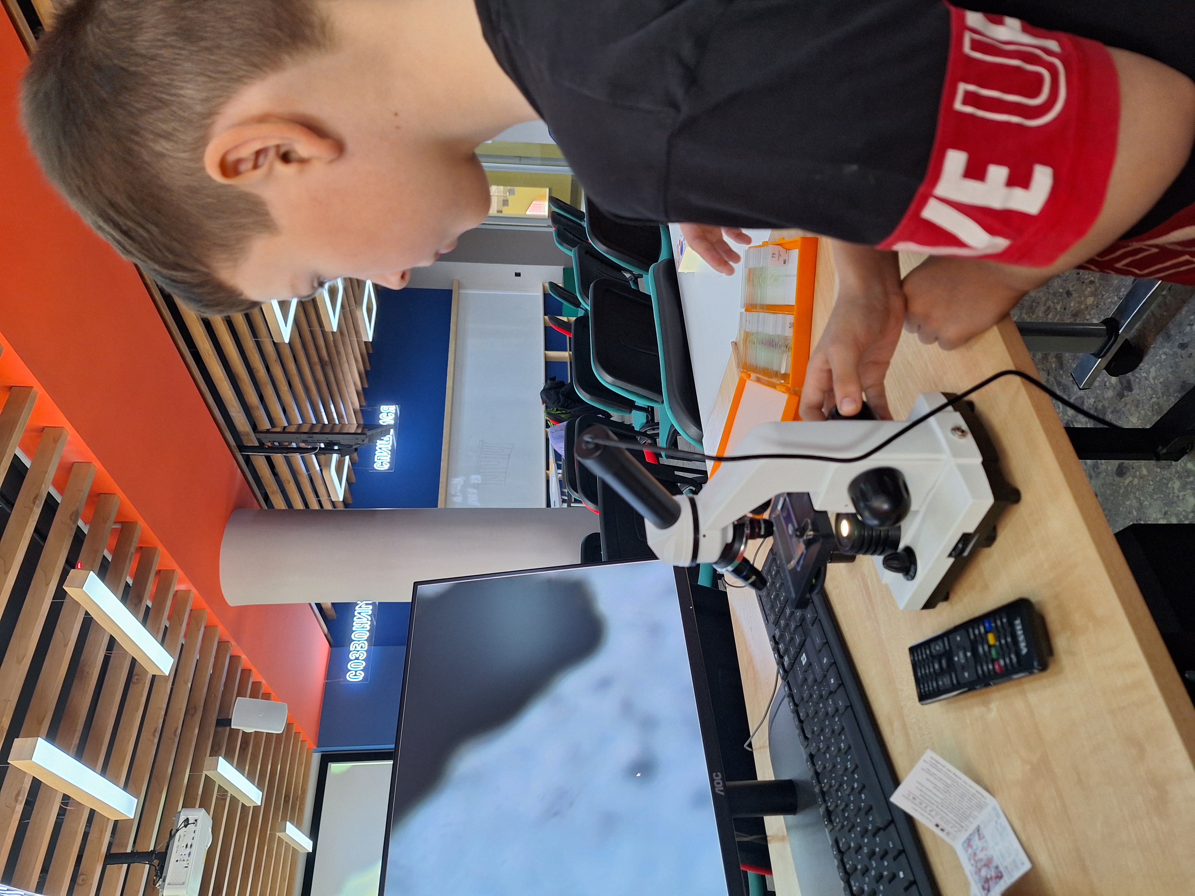 Изучая «Микромир», ребят познакомили с микроскопом, научили использовать его в работе и на практике показали, как работать с микропрепаратами.