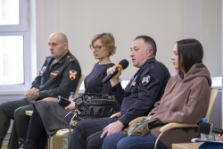 С приветственным словом выступил ректор Новосибирского ГАУ Евгений Владимирович Рудой, а так же заведующая кафедрой ГМА ФЭиУ НГАУ, кандидат педагогических наук Ирина Эдвиновна Толстова. Среди выступающих были действующие военнослужащие, Евгений Алексеевич Щербаков, полковник полиции, командир ОМОН «Сибирь» Управления Росгвардии по Новосибирской области, старший лейтенант Юнус Юсупгаджиевич Саидов, начальник гарнизонного клуба Сибирского округа войск национальной гвардии, которые рассказали о своих личных историях на службе. О том, как важна поддержка общества, рассказала Лариса Филиппова, представитель сообщества «Народ и Армия едины». История добровольца и волонтера Виктории смогла вдохновить многих присутствующих и напомнить о том, что каждый из нас может внести свой вклад в общее дело.