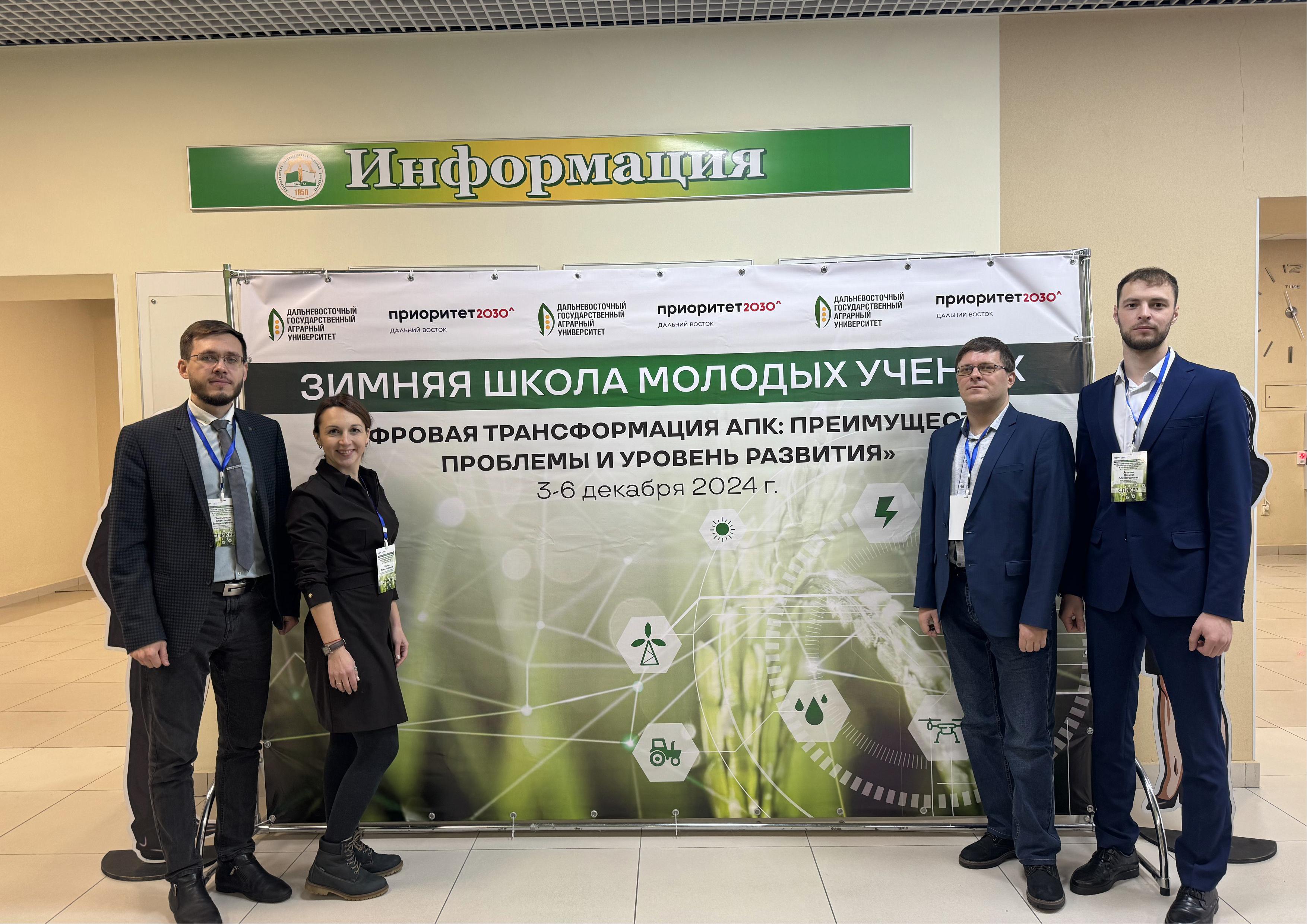 С 3 по 6 декабря заведующий кафедрой надежности и ремонта машин Александр Владимирович Пчельников и доцент кафедры эксплуатации машинно-тракторного парка Даниил Александрович Яковлев посетили Дальневосточный ГАУ, где в рамках зимней школы молодых ученых провели стратегическую сессию «Цифровые вызовы в аграрном инжиниринге».