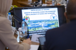В рамках рабочего визита в Новосибирский ГАУ делегации из университета науки и технологий Мбея, в лице ректора университета, профессора Алоиса Мвумы и руководителя юридической службы Зухуры Шабани, состоялась встреча с директорами и деканами факультетов и институтов университета.