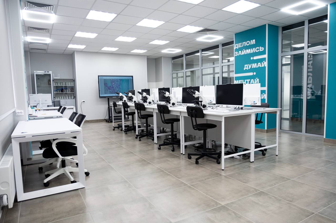 - Биотехнологическая аудитория — оснащена всем необходимым для проведения экспериментов и исследований в области биотехнологий.