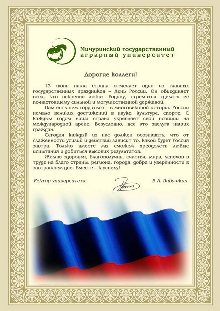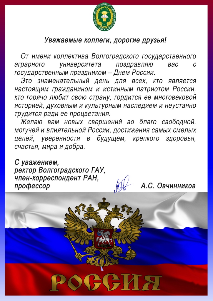 В адрес коллектива преподавателей и сотрудников Новосибирского государственного аграрного университета поступили поздравления с государственным праздником от наших коллег из других вузов и учебных центров.