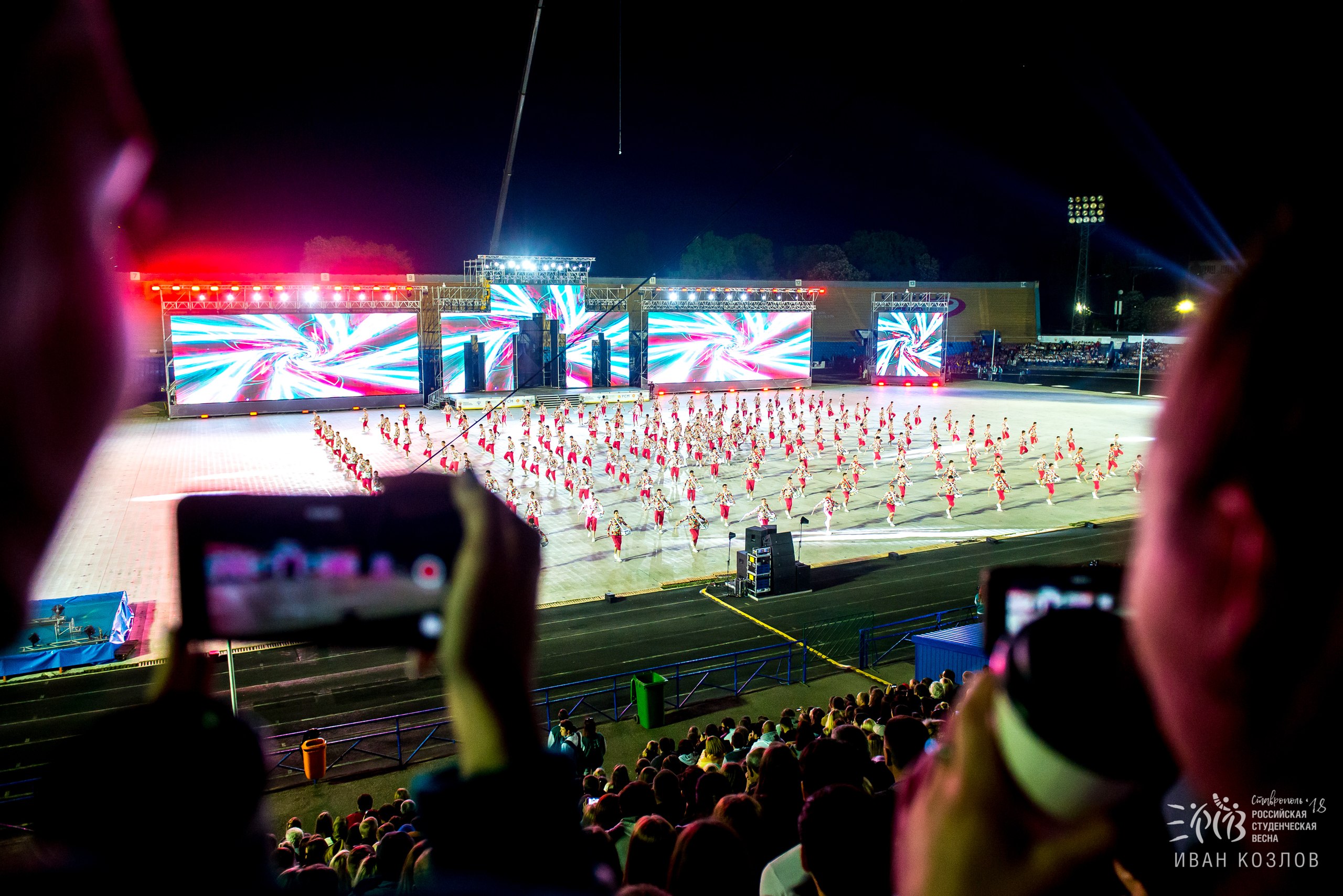 15 мая на стадионе «Динамо» состоялась крупномасштабная театрализованная церемония открытия фестиваля.Студентам НГАУ выпал уникальный шанс увидеть выступление тысячеголосого детского хора, яркое шоу барабанщиков, черлидеров, танцоров, певцов. Ставрополье рассказало историю своего края через 3D-анимацию и выступления коллективов, которыми гордится регион.