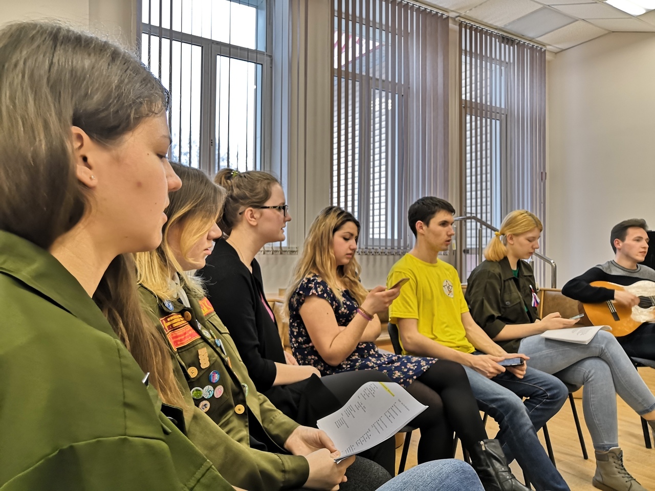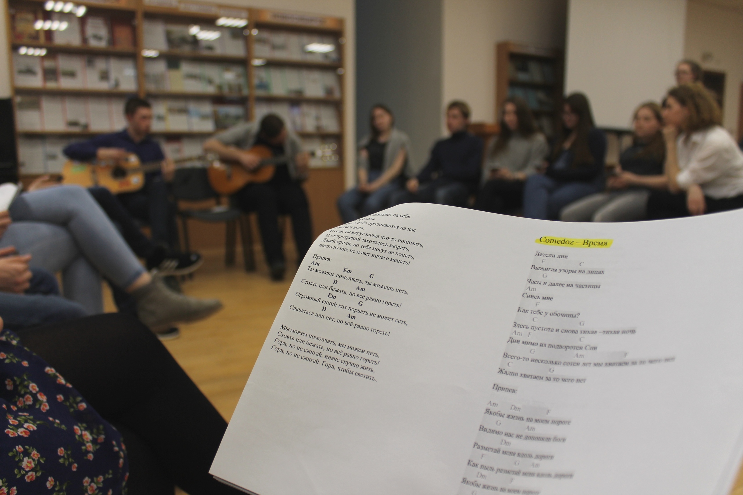 27 марта состоялся вечер гитарной музыки. Ранним весенним вечером, когда на только оттаявших лужах вновь появился тоненький слой льда, так приятно провести вечер в приятной компании и послушать звучание гитарных струн. Едва коснувшись, гитара отзывается мелодичной музыкой, которая словно только и говорит, что о любви, следом отрывистые ритмы песен переносят мысли к походам, кострам и вечернему закату.