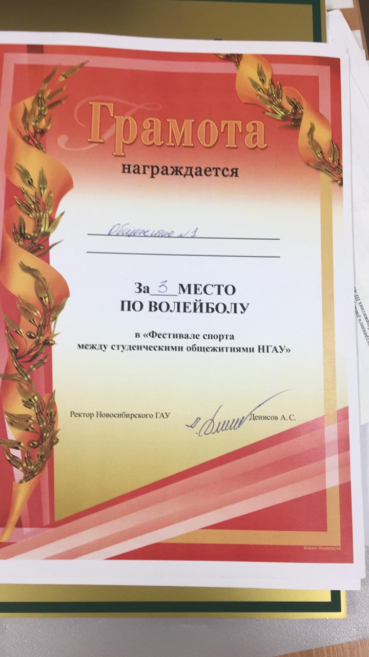 3 апреля 2019 прошла спартакиада среди студентов, проживающих в общежитиях Новосибирского ГАУ. Команда общежития №1 факультета СПО заняла третье место по волейболу и настольному теннису.
