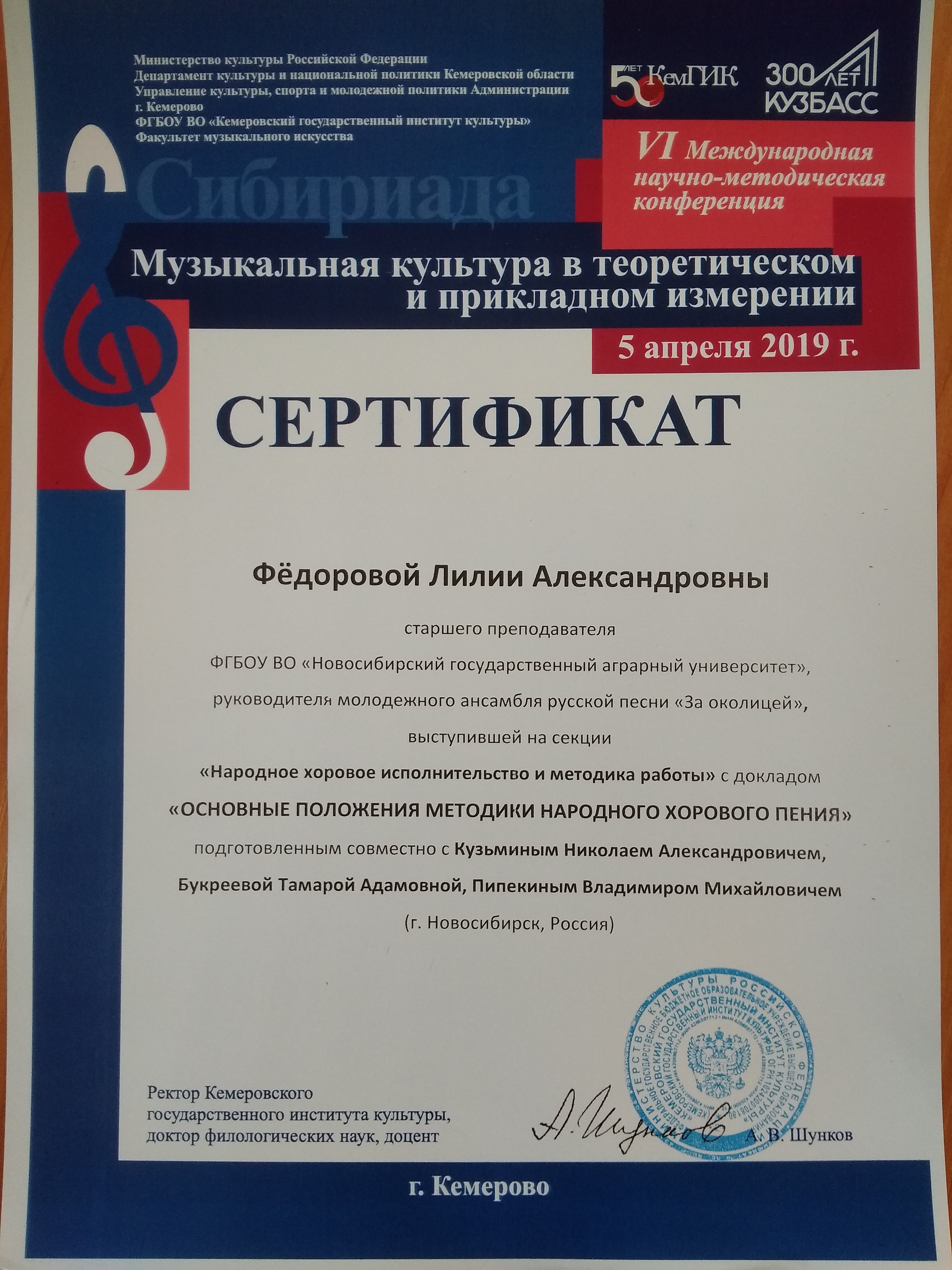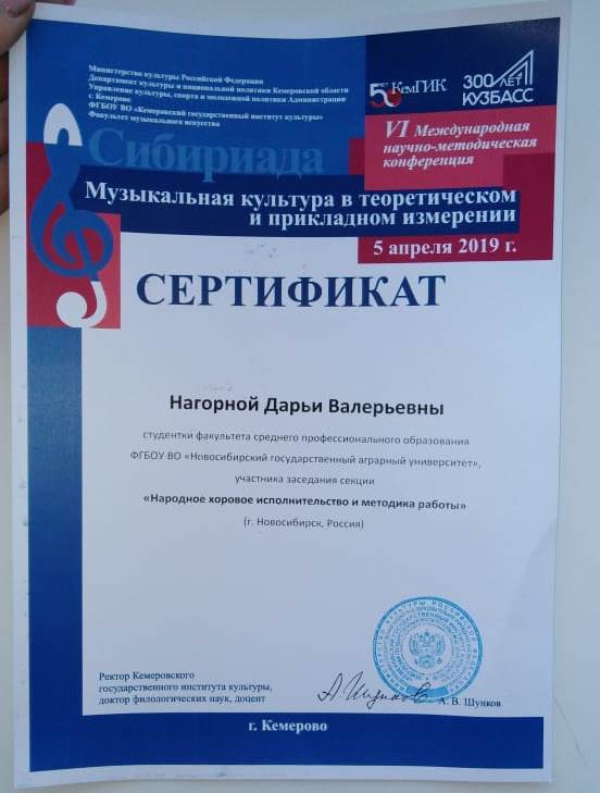 Пятого апреля на базе Кемеровского государственного института культуры в рамках VII международного фестиваля-конкурса «Сибириада» состоялась VI международная конференция «Музыкальная культура в теоретическом и прикладном измерении».