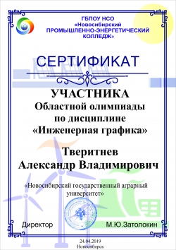 24 апреля 2019 года на базе «Новосибирского промышленно- энергетического колледжа» совместно с ГАУ ДПО НСО «Новосибирский центр развития профессионального образования» была проведена областная предметная олимпиада профессиональных образовательных учреждений Новосибирской области по дисциплине «Инженерная графика».