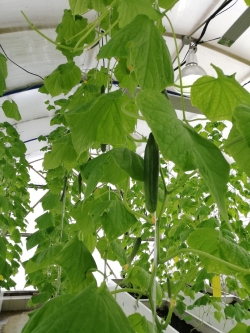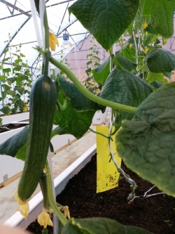 В зимний сезон 2018–2019 гг. в поликарбонатной туннельной арочной теплице на базе ландшафтного центра Новосибирского ГАУ впервые началось выращивание огурца. Целью явилось не только определение возможностей получения свежей продукции, но и научно-исследовательские вопросы. Были поставлены задачи определения микроклиматических условий теплицы (температура, влажность воздуха, освещенность), изучение влияния микробиологического препарата БакСиб на урожайность гибридов F1 огурца, влияние удобрений ТурМакс+БиоВайз, изучение анатомических особенностей строения черешков листьев и плодоножек (микроскопические исследования). Кроме того, проводились фенологические наблюдения, определялась площадь листьев, производилось морфологическое описание изучаемых гибридов. Осуществлялась регулярная борьба с паутинным клещом и белокрылкой, но только при помощи экологически безопасных методов, например, использовался паутинный клещ Phytoseiulus.
