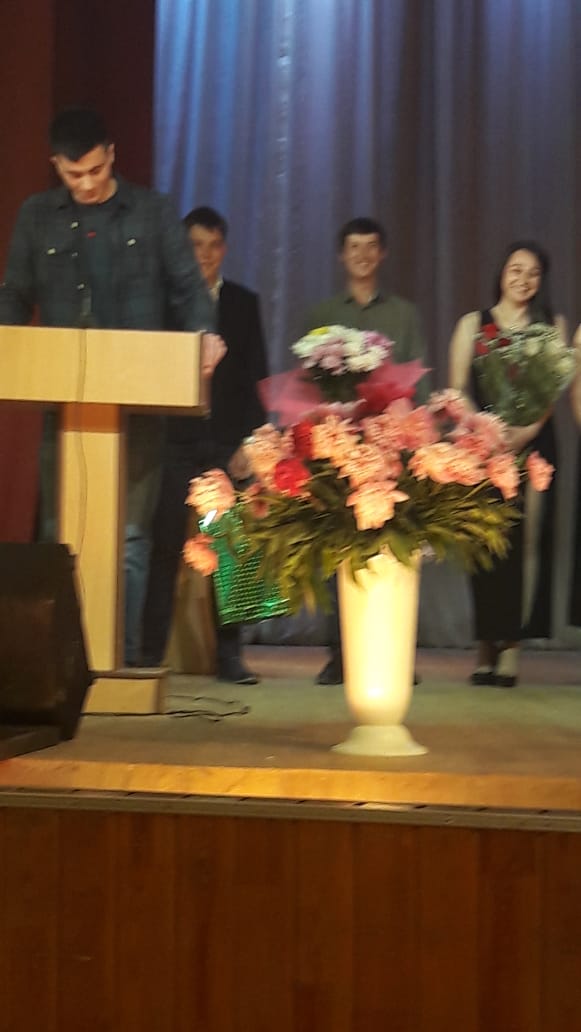 С поздравлениями и пожеланиями дальнейших успехов выступили проректор по учебной работе университета В.Н. Бабин, декан факультета Е.Я. Баринов. Декан факультета поблагодарил выпускников, активно занимавшихся спортом, художественной самодеятельностью и вручил им грамоты дизайнерской работы.