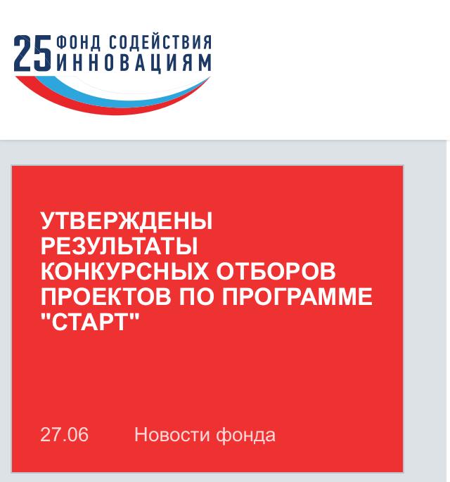 27 июня 2019 года протоколом заседания дирекции Фонда содействия инновациям были утверждены итоги конкурсов по отбору проектов по программе «Старт».