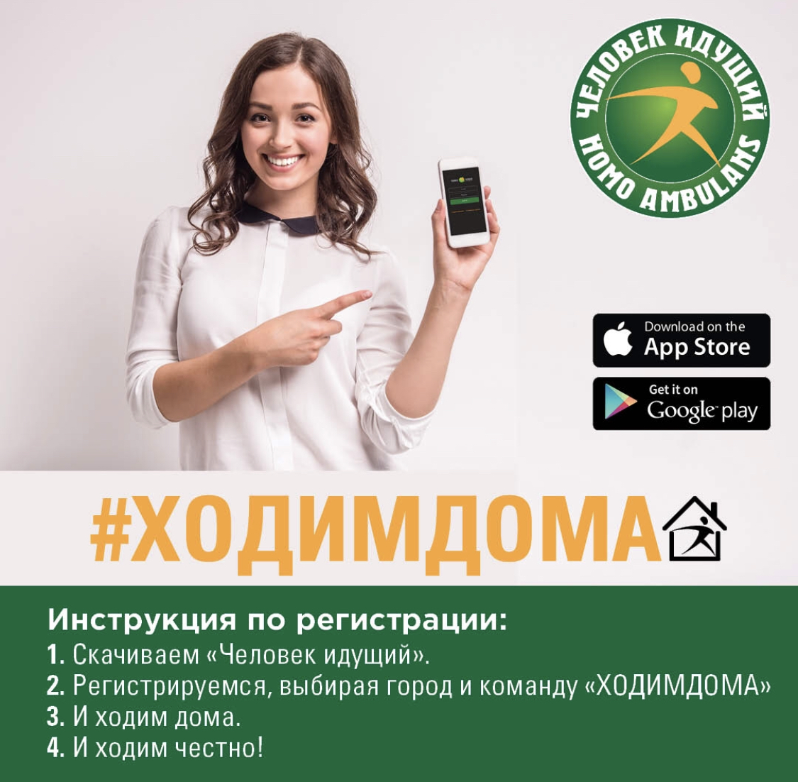 13.04.2020 года в 16:30 (Мск) Вебинар, посвященный СТАРТУ домашних соревнований по фоновой ходьбе в индивидуальном зачёте «ХОДИМДОМА»