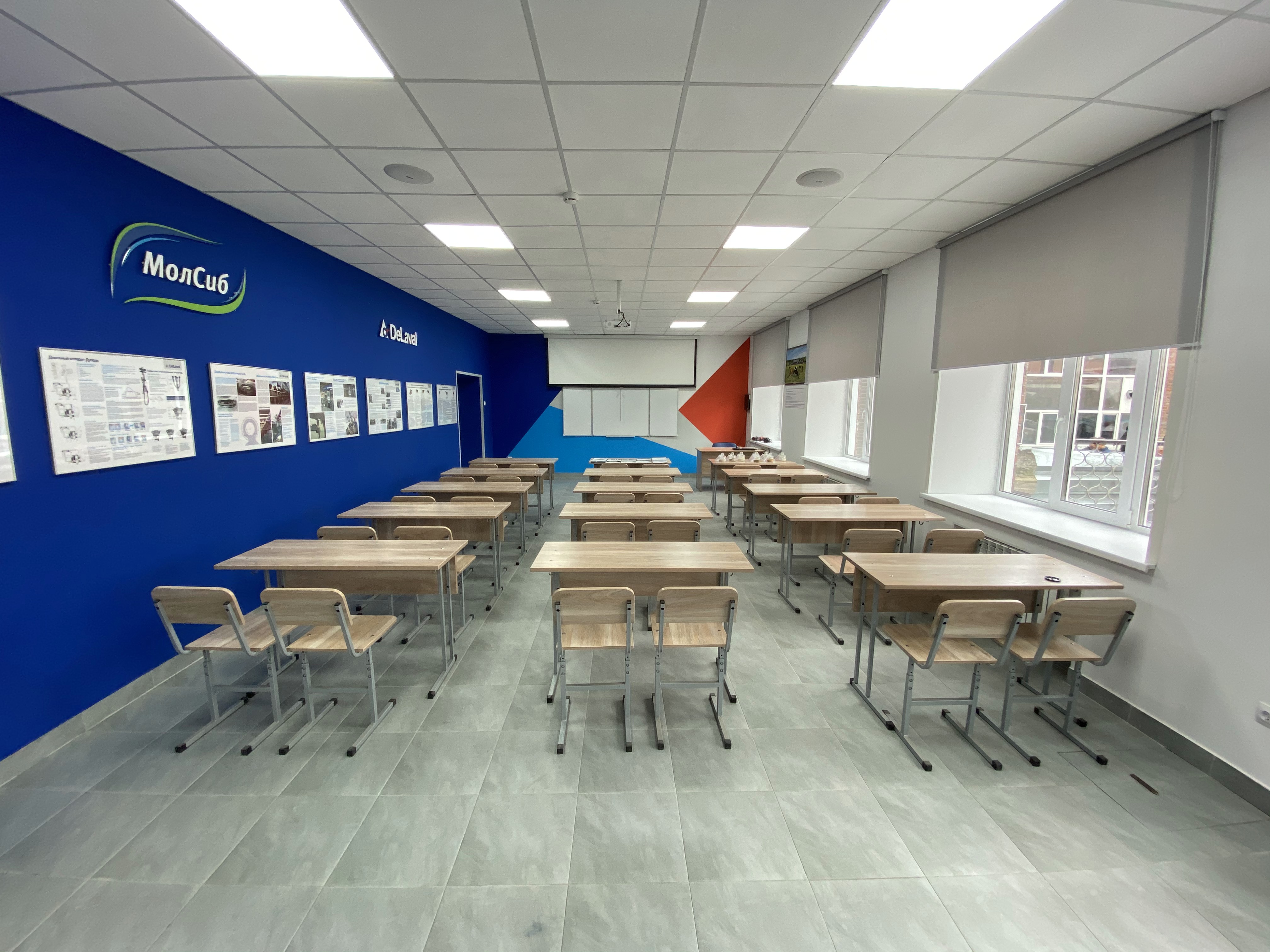 Аудитория сделана при поддержке ведущего производителя оборудования для автоматизации процессов доения, кормораздачи и других технологических процессов молочных ферм - компании DeLaval, и крупнейшего агропромышленного холдинга Новосибирской области - компании «МолСиб».