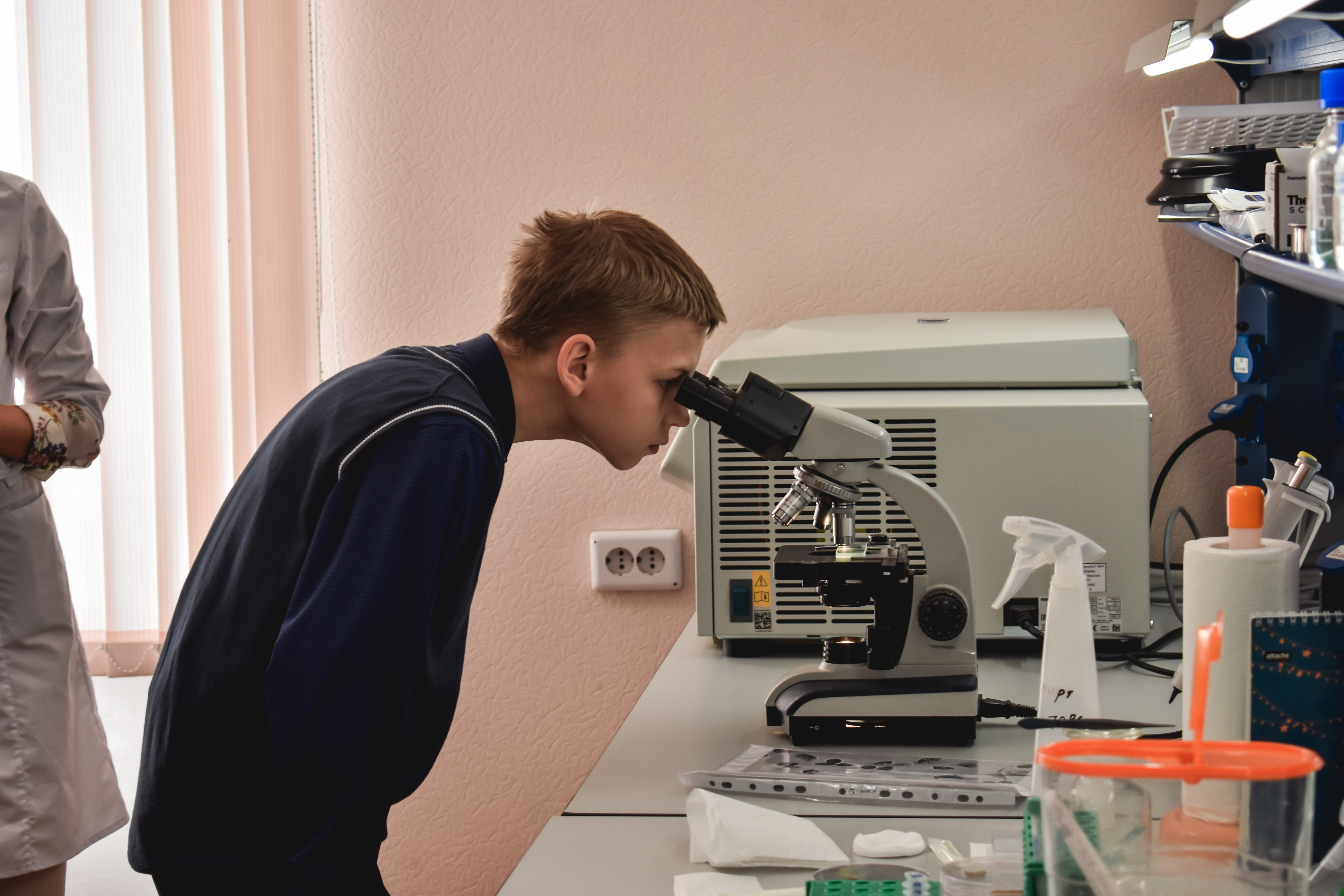 На экскурсии в лабораторию Биологической защиты растений и биотехнологии, в рамках Всероссийской акции "На острие науки", они смогли заглянуть в мир биологических научных экспериментов. В лаборатории есть инсектарий – специальные комнаты для содержания и разведения насекомых и даже пауков, которых они смогли увидеть, подержать, а самые смелые даже смогли препарировать.