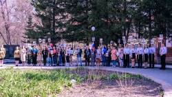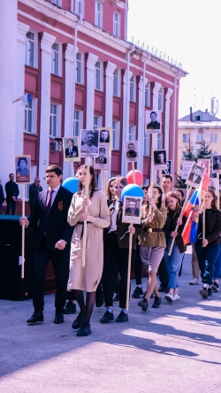 На площади аграрного университета шествовала колонна бессмертного полка. Сотрудники и студенты несли в руках штендеры своих героев, тех, кто не жалея своей жизни, боролся за освобождение Родины.