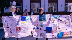 Вслед за бессмертным полком на площадь перед Главном корпусом вынесли еще одну реликвию нашего университета – платок памяти – полотно, хранящее в себе память о тысячи героях – участниках ВОВ, блокадниках, тружениках тыла, сшитый воедино из маленьких платочков, сделанных руками наших студентов.